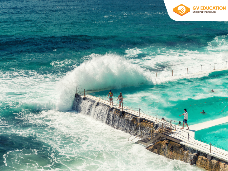 Hôm nay, GV Education sẽ đồng hành cùng bạn khám phá Bondi Beach – một trong những bãi biển đẹp nhất và nổi tiếng nhất của nước Úc. Nhắc đến xứ sở chuột túi, hình ảnh những bãi biển trải dài dưới ánh nắng rực rỡ chắc chắn là điều không thể thiếu, và Bondi Beach chính là biểu tượng rực rỡ nhất, mang đậm hơi thở văn hóa và lối sống Úc.